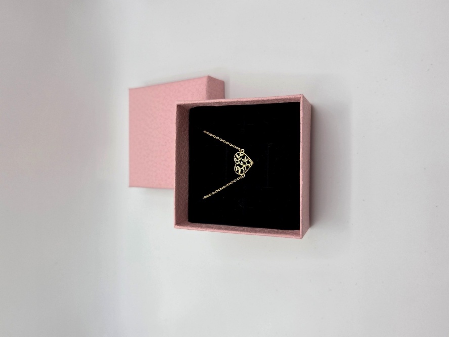 Motyw serca symbolizuje uczucia i bliskość, a liście dodają kompozycji lekkości, harmonii i elegancji. To idealny dodatek do stylizacji na co dzień, do pracy czy na spotkanie, a także wyjątkowy pomysł na prezent — dla ukochanej osoby, mamy, siostry lub przyjaciółki.