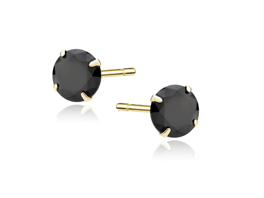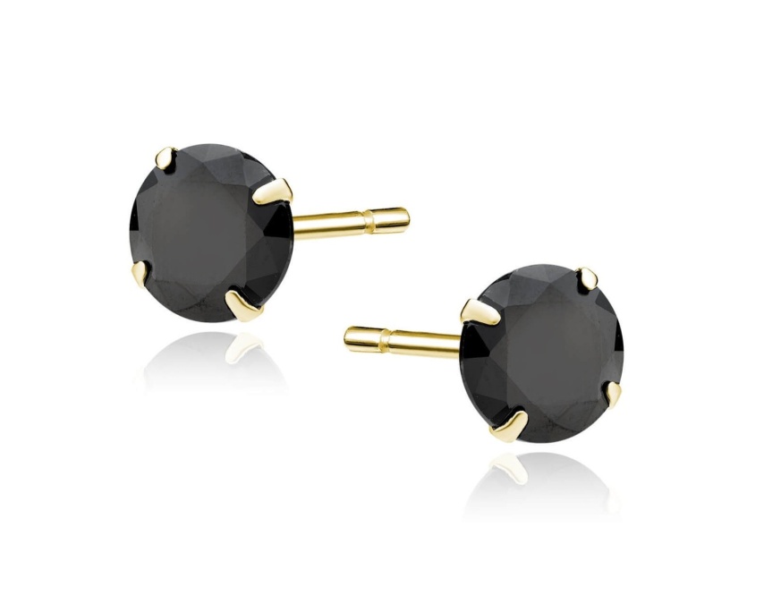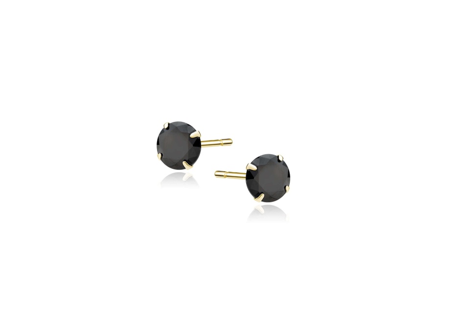 14K Żółte złoto 7 mm Cyrkonia czarnaSrebrne pozłacane kolczyki pr. 925 – czarna cyrkonia, okrągłe (średnica 7 mm)
