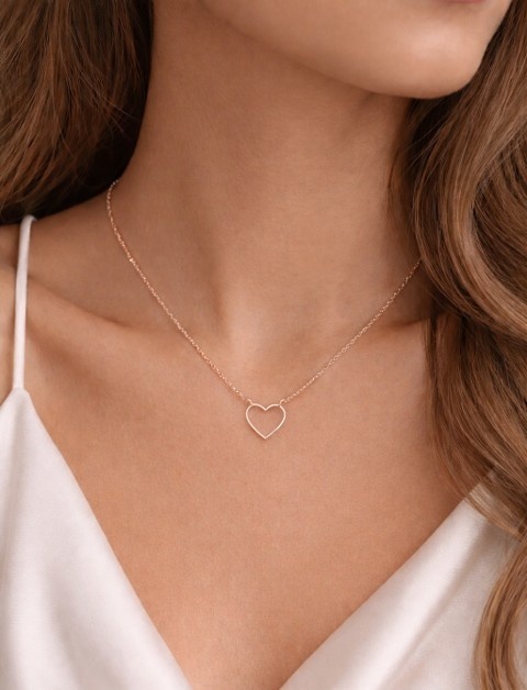 Centralnym elementem naszyjnika jest zawieszka w kształcie serca, subtelnie podkreślająca romantyczny styl i idealna jako symbol miłości lub wyjątkowego uczucia. Różowe złocenie pięknie kontrastuje z naturalnym lśnieniem srebra, tworząc efektowną i jednocześnie uniwersalną kompozycję, która pasuje zarówno do codziennych, jak i bardziej eleganckich stylizacji.