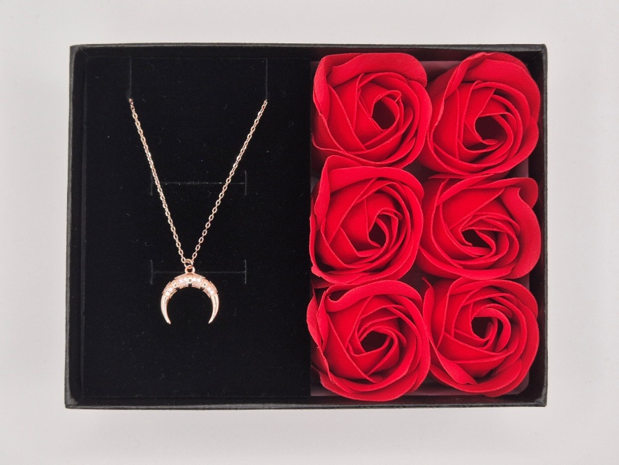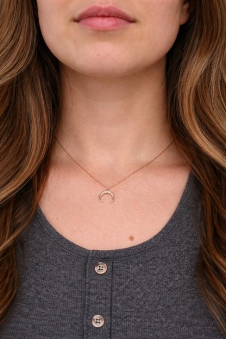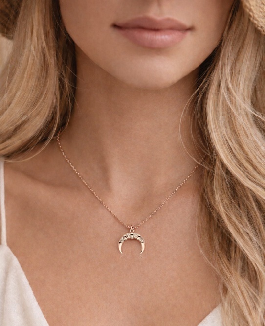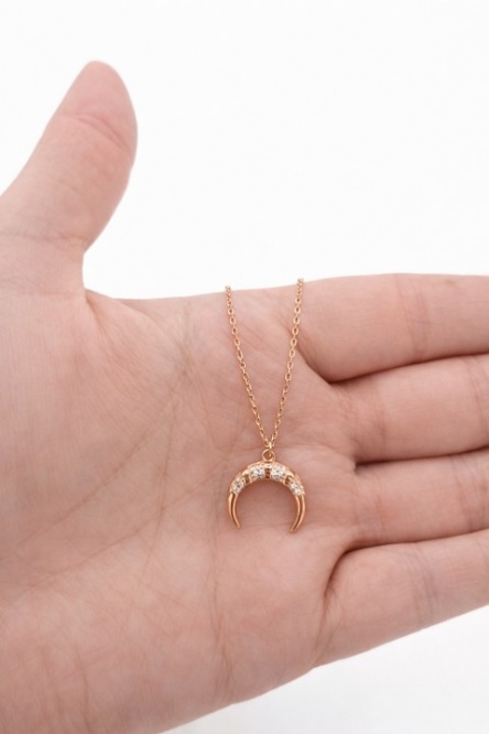 Centralnym elementem naszyjnika jest półksiężyc ozdobiony lśniącymi cyrkoniami, które efektownie odbijają światło i dodają biżuterii luksusowego wyglądu. Motyw półksiężyca symbolizuje kobiecość, harmonię i tajemniczość, dzięki czemu naszyjnik stanowi nie tylko stylowy dodatek, ale również biżuterię o wyjątkowym znaczeniu.