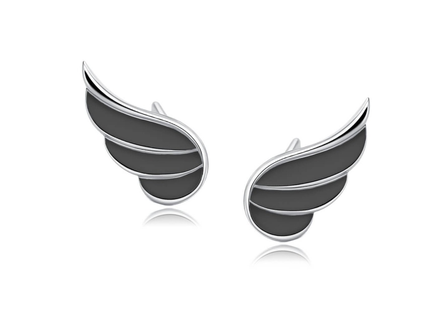 Rod- srebroSrebrne kolczyki pr. 925 – skrzydła z czarną emalią