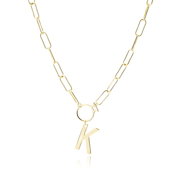 14K Żółte złotoSrebrny pozłacany naszyjnik pr. 925 – literka "K" na łańcuszku z kółkiem