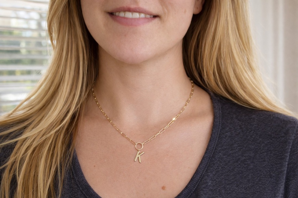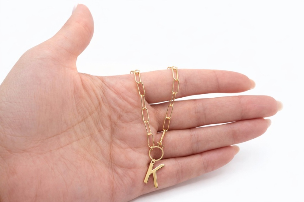 zawieszka z literką „K” na łańcuszku z kółkiem