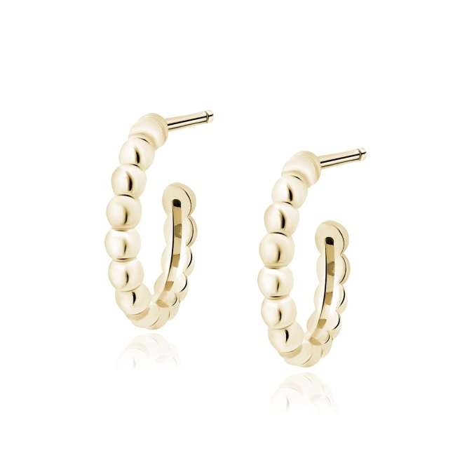 Kolczyki wykonano z najwyższej jakości srebra próby 925, a następnie pokryto pozłacaną powłoką, która nadaje im ciepły, złocisty połysk. Detale w postaci subtelnych kuleczek dodają całości finezji i przyciągają spojrzenia, podkreślając kobiecy charakter biżuterii.