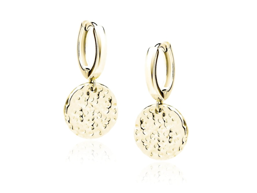 14K Żółte złotoSzukasz kolczyków, które wyglądają minimalistycznie, ale przyciągają spojrzenia detalem? Te pozłacane kolczyki ze srebra próby 925 łączą klasyczną formę z efektowną fakturą. Ozdobą jest okrągła, fakturowana blaszka o średnicy 11 mm, która pięknie pracuje ze światłem i dodaje stylizacji eleganckiego „błysku” bez przesady.