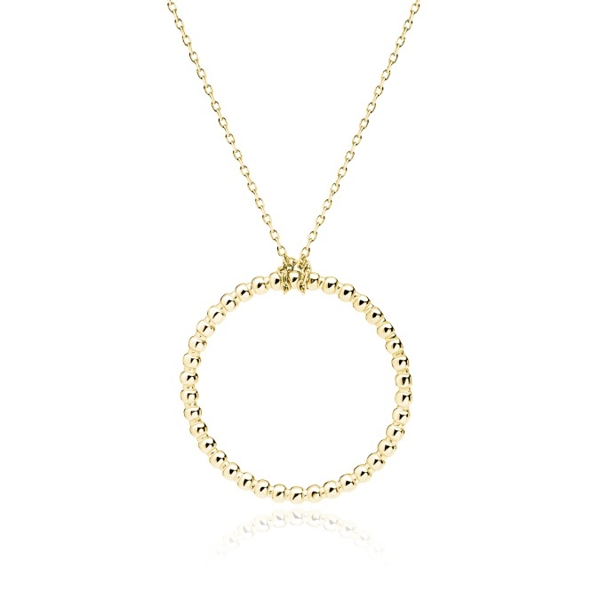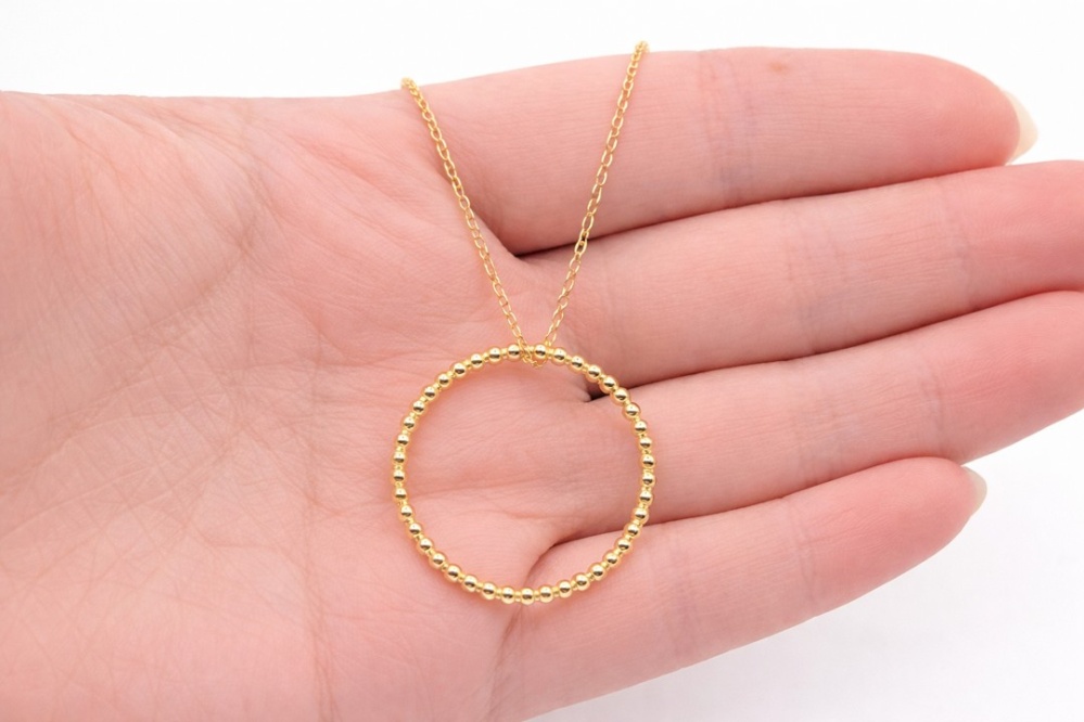 14K Żółte złotoSrebrny pozłacany naszyjnik pr. 925 – kółko z kuleczek