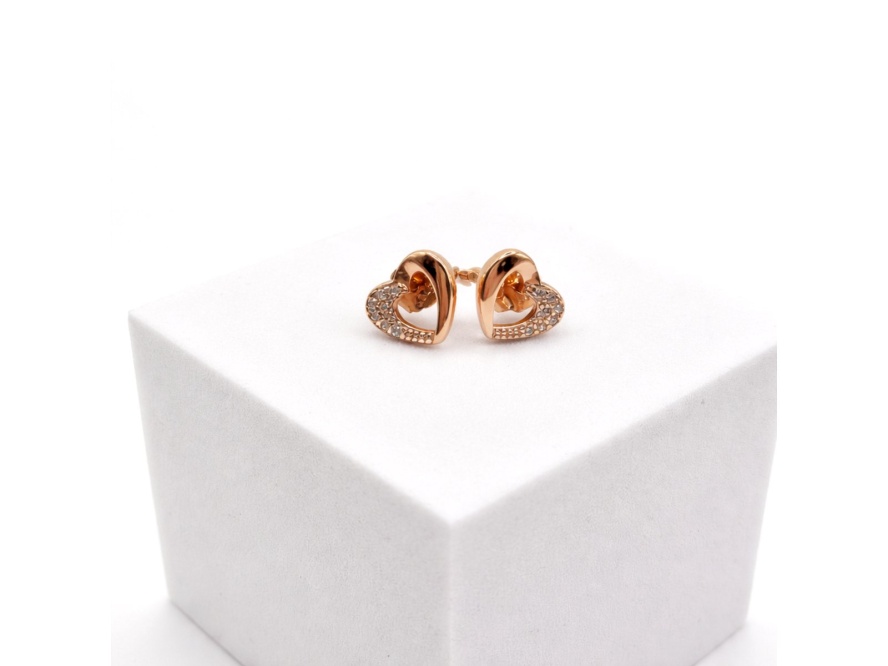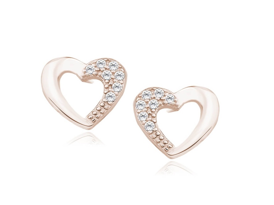 Rod- srebro Cyrkonia biała✨ Srebrne kolczyki pr. 925 – Serduszka z cyrkoniami (różowe złoto) ✨