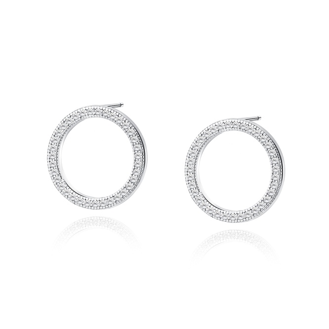 Delikatne i ponadczasowe kolczyki w kształcie kółek wykonane z wysokiej jakości srebra próby 925. Powierzchnia została pokryta warstwą rodu, która nadaje biżuterii piękny połysk oraz chroni ją przed matowieniem. Kolczyki ozdobione są białymi cyrkoniami oprawionymi metodą microssetting, co zapewnia subtelny blask i eleganckie wykończenie.