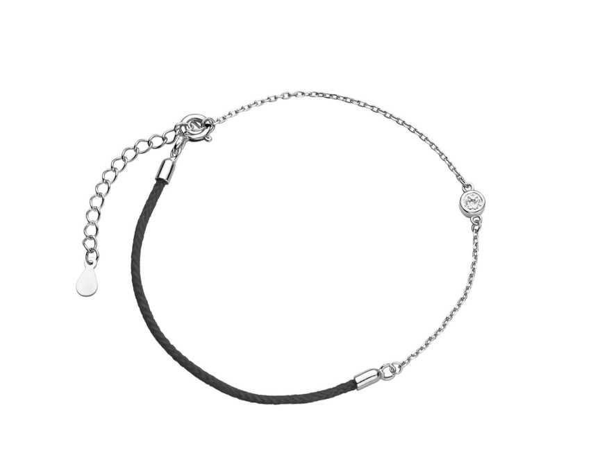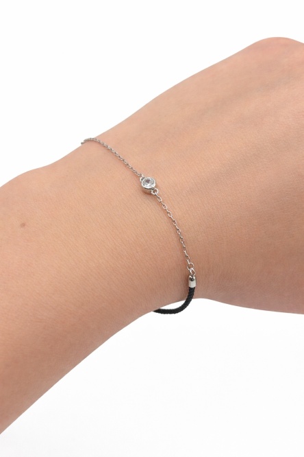 Srebrna bransoletka 925 z czarnym sznurkiem i cyrkonią