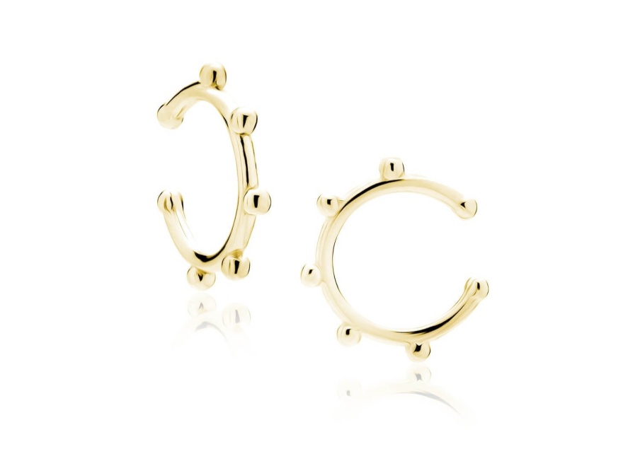 Model wyróżnia się wysokim połyskiem, dzięki któremu biżuteria pięknie odbija światło i wygląda bardzo „czysto” na uchu. Dodatkowo złocenie zostało zabezpieczone metodą electrocoating (e-coating), co pomaga ograniczać szybkie ścieranie i zmianę koloru w trakcie użytkowania (przy prawidłowej pielęgnacji).